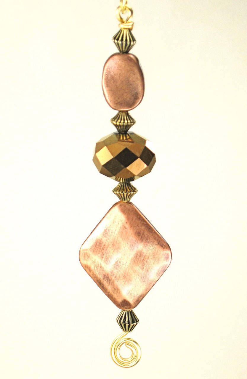 Glass and Copper Metal Diamond Ceiling Fan Pull Chain